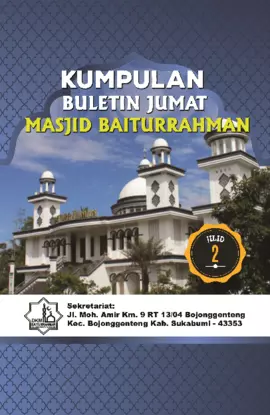 Sinopsis Buku Kumpulan Buletin Jumat Jilid 2 Buku ini merupakan kumpulan artikel dan buletin yang disusun dalam rangka memperingati dan memperdalam makna hari Jum’at dalam perspektif Islam. Buku ini menghadirkan berbagai topik yang relevan dengan kehidupan sehari-hari, seperti makna kemerdekaan dalam pandangan Islam, pentingnya shalat berjamaah, nilai-nilai kebenaran, serta pentingnya berdoa sebagai jembatan menuju prestasi. Buku ini juga menyajikan kisah-kisah inspiratif, seperti keajaiban sedekah, adab berpakaian, dan pentingnya membaca. Selain itu, buku ini juga membahas tantangan-tantangan dalam masyarakat modern, seperti pentingnya masyarakat yang aktif dan kritis, serta kesadaran akan pentingnya mengelola kekayaan alam secara bijak. Dengan bahasa yang sederhana, buku ini bertujuan untuk memberikan refleksi dan motivasi bagi pembaca agar lebih dekat dengan agama, lebih beriman, dan lebih peduli terhadap lingkungan serta masyarakat sekitar. Alasan Penyusunan Sinopsis: - Buku ini merupakan kumpulan buletin yang berisi berbagai topik agama, kehidupan, dan sosial. - Penulis menyampaikan berbagai amal ibadah khusus yang dilakukan pada hari Jum’at, seperti membaca surat Al-Kahfi dan shalat berjamaah. - Buku ini juga mengandung kisah-kisah inspiratif dan nasihat-nasihat yang relevan dengan kehidupan sehari-hari. - Tujuan utama buku ini adalah memberikan refleksi dan motivasi bagi pembaca untuk hidup lebih bermakna dan beriman.