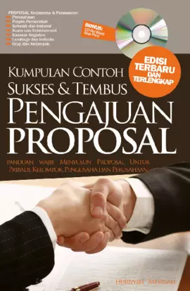 Sinopsis Buku: Buku ini memberikan panduan lengkap dan terstruktur tentang penyusunan proposal usaha, baik untuk keperluan pribadi maupun institusi. Dalam buku ini, pembaca akan memahami konsep proposal, fungsi, dan berbagai jenis proposal yang dapat diusulkan. Selain itu, buku ini juga menjelaskan syarat-syarat penting dalam pembuatan proposal yang detail, realistis, dan terukur, serta kemampuan yang harus dimiliki oleh penyusun proposal seperti berfikir prospektif, kemampuan pemasaran, manajemen yang handal, dan pengalaman di bidang wirausaha. Buku ini juga menjelaskan tujuan dari proposal usaha, yaitu untuk membantu pelaku usaha memperoleh gambaran tentang langkah-langkah pengembangan usaha, membandingkan harapan dengan realita, serta mengembangkan strategi yang efektif. Terdapat pula penjelasan tentang bagian-bagian yang harus dimuat dalam proposal, seperti nama proposal, pendahuluan, tujuan, bentuk kegiatan, pelaksanaan, biaya, harapan, dan lampiran. Selain itu, buku ini juga menjelaskan fungsi proposal dalam berbagai konteks, seperti untuk penelitian, pendirian usaha, pengajuan tender, pengajuan kredit, dan pengadakan acara. Buku ini sangat berguna bagi pelaku usaha, mahasiswa, konsultan, investor, dan pihak-pihak lain yang membutuhkan penjelasan rinci tentang cara menyusun dan mengajukan proposal secara profesional dan persuasif.