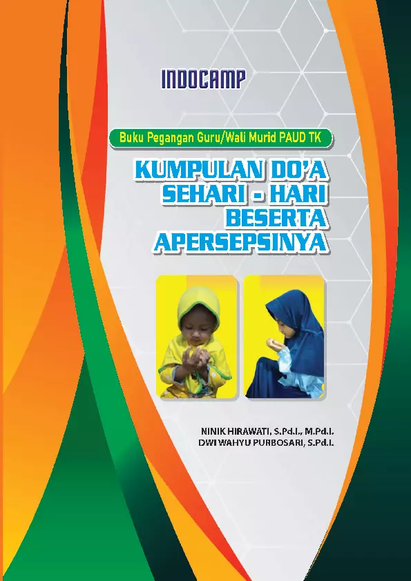 Buku Kumpulan Doa sehari hari beserta Apersepsinya ini dibuat untuk membantu para guru TK atau wali murid dalam memberikan materi pembelajaran tentang doa sehari hari kepada anak agar anak merasa senang dalam belajar menirukan bacaan doa sehari hari yang diawali dengan pemberian apersepsi yang tepat dan menarik bagi anak sehingga anak menyukai doa