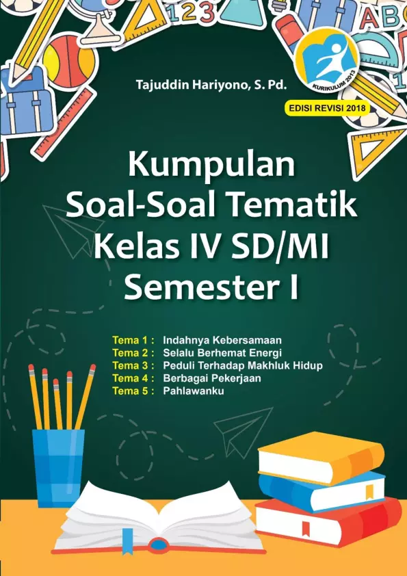 Buku Kumpulan Soal Soal Tematik Kelas IV Semester I ini merupakan buku pendampingan untuk Pendidikan Sekolah Dasar Madrasah Ibtidaiyah SD MI yang mengacu pada Standart Isi Kurikulum 2013 Kurikulum 2013 merupakan kurikulum terbaru yang berorientasi kepada Standart Pendidikan Anak Sekolah Dasar tersaji dalam format yang dikemas dalam bentuk paket tema Buku ini disusun berdasarkan Buku Tematik Edisi Revisi 2018 yang berisi Soal Soal latihan dan dilengkapi dengan Latihan Akhir Tema Soal soal pada buku ini dapat digunakan sebagai sarana untuk berlatih baik di sekolah maupun di rumah Buku ini sangat layak untuk dijadikan sebagai sarana berlatih bagi siswa SD MI untuk meningkatkan kemampuan anak Semoga buku ini bermanfaat bagi dunia pendidikan di Indonesia