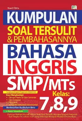 Sinopsis Buku: Buku ini merupakan kumpulan soal tersulit Bahasa Inggris untuk siswa SMP kelas 7, 8, dan 9. Buku ini dirancang sebagai pendamping belajar yang membantu siswa memahami dan menguasai soal-soal yang sering muncul dalam ujian dan proses belajar sehari-hari. Buku ini berbasis Kurikulum 2013, sehingga memudahkan siswa dalam memperkuat pemahaman sesuai dengan materi yang telah dipelajari di sekolah. Buku ini dilengkapi dengan berbagai bagian yang mendukung proses belajar, seperti *Peta Materi*, *Materi Inti*, *Latihan Soal Tersulit*, *Pembahasan Soal*, *Analisa Pemahaman Materi*, *Laporan Hasil Belajar Siswa*, dan *Latihan Ujian Akhir Sekolah*. Selain itu, buku ini juga memuat *Pendidikan Karakter (Pendikar)* yang membantu siswa dalam mengembangkan sikap dan nilai-nilai positif selama proses belajar. Dengan struktur yang jelas dan konten yang komprehensif, buku ini bertujuan untuk meningkatkan kemampuan berbahasa Inggris siswa, terutama dalam memahami dan menjawab soal-soal yang bersifat kompleks. Buku ini sangat cocok digunakan oleh siswa SMP kelas 7, 8, dan 9 sebagai referensi utama dalam belajar Bahasa Inggris.