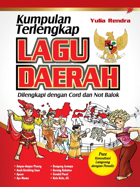 Ada banyak lagu daerah yang tercipta di negeri ini Seperti kita tahu masing masing suku bangsa Indonesia mempunyai lagu daerah tersendiri seperti Ampar Ampar Pisang Anak Kambing Saya Anju Ahu Apuse Ayam Den Lapeh dan Gelang si Paku Gelang Apakah hanya itu saja lagu daerah yang ada di Indonesia Tentu saja tidak Masih banyak lagi lagu daerah yang ada dan disajikan super lengkap di dalam buku ini Selain menyajikan beragam lagu daerah terpopuler di Indonesia buku ini juga menyertakan cord dan not balok untuk masing masing lagu sehingga mempermudah bagi Anda yang ingin memainkan lagu tersebut menggunakan alat musik piano atau yang lainnya Buku ini juga cocok bagi guru dan orang tua yang ingin mengenalkan lagu lagu daerah kepada anak anak mereka Jadi tunggu apa lagi segera miliki buku ini dan pelajarilah Serta jadilah generasi penerus yang tidak akan pernah melupakan budaya bangsa kita Selamat berlatih