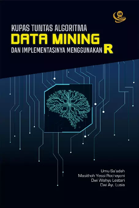 Buku ini menyajikan pembahasan cara kerja algoritma algoritma dalam Data Mining secara detail pada data kualitatif maupun kuantitatif Materi yang dibahas pada buku ini meliputi cara prapengolahan data dan dua tugas data mining data mining task yaitu deskripsi dan prediksi Terdapat pula materi tingkat lanjut yaitu Metode Ensemble yang meliputi algoritma Bagging Bootstrap Aggregating Boosting dan Random Forest Buku ini memuat contoh contoh bagaimana menerapkan algoritma Data Mining pada data real yang digunakan dalam penelitian sehingga terdapat integrasi antara hasil penelitian dan materi proses belajar mengajar di kelas Contoh contoh soal disediakan dalam penghitungan secara manual dan implementasinya menggunakan bahasa pemrograman R untuk memudahkan para pembaca dalam memahami isi buku Software R bebas lisensi sehingga tidak memerlukan software statistika yang powerful karena memiliki banyak package yang merupakan hasil kontribusi peneliti peneliti di seluruh dunia Buku ini dibagi menjadi 9 bab Pada Bab 1 dibahas tentang pengenalan data mining Pada Bab 2 dikenalkan function dasar pemrograman R dan RStudio yang merupakan Integrated Development Environment IDE dari R Prapengolahan data data preprocessing dibahas pada Bab 3 Metode deskripsi yang dibahas pada buku ini adalah aturan asosiasi dan analisis cluster berturut turut disajikan pada Bab 4 dan Bab 5 Metode prediksi pada buku ini adalah klasifikasi yang meliputi klasifikasi Bayes Bab 6 K Nearest Neighbors Bab 7 pohon keputusan Bab 8 dan metode ensemble Bab 9