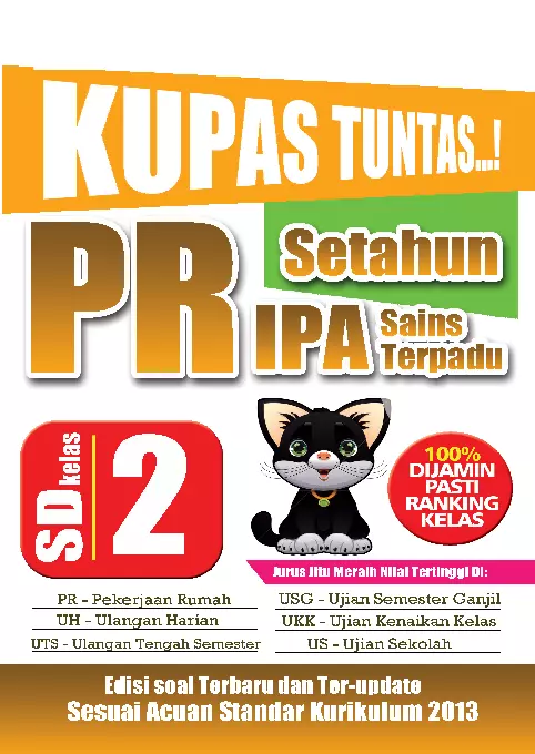 Sinopsis Buku: Buku ini merupakan panduan belajar yang lengkap dan praktis untuk siswa Sekolah Dasar (SD) dalam pelajaran Ilmu Pengetahuan Alam (IPA) Sains. Buku ini dirancang untuk membantu siswa memahami konsep-konsep dasar tentang tumbuhan, hewan, benda, dan perubahan di sekitar mereka. Buku ini mencakup berbagai materi seperti struktur dan fungsi tubuh hewan, pertumbuhan tumbuhan dan hewan, tempat hidup tumbuhan dan hewan, wujud dan perubahan benda, serta pengaruh sumber energi terhadap lingkungan. Selain itu, buku ini juga dilengkapi dengan berbagai latihan soal yang berupa Pekerjaan Rumah (PR), soal pilihan ganda, dan soal isian yang dirancang untuk melatih pemahaman siswa dan kemampuan berpikir kritis mereka. Soal-soal dalam buku ini disusun sesuai dengan standar kurikulum 2013, sehingga sangat relevan dan bermanfaat untuk persiapan Ulangan Harian (UH), Ulangan Tengah Semester (UTS), Ujian Semester (US), Ujian Kenaikan Kelas (UKK), dan Ujian Sekolah (US). Buku ini sangat berguna bagi guru dan siswa sebagai sumber referensi dalam pembelajaran di sekolah maupun untuk belajar mandiri di rumah. Dengan materi yang jelas, tata letak yang terstruktur, dan soal-soal yang variatif, buku ini dapat menjadi pendukung utama dalam upaya meningkatkan nilai siswa dan membantu mereka meraih prestasi terbaik dalam pelajaran IPA Sains.