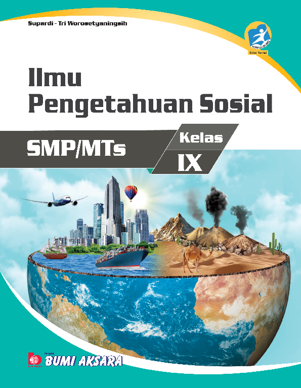 Sinopsis Buku: Buku *Ilmu Pengetahuan Sosial SMP/MTs Kelas IX* ini merupakan karya yang disusun secara terpadu dan komprehensif untuk memenuhi kurikulum 2013 di tingkat Sekolah Menengah Pertama. Buku ini ditujukan bagi siswa kelas IX yang ingin memahami fenomena sosial, budaya, ekonomi, dan politik di berbagai negara, khususnya di Asia dan benua lainnya, serta dampak perubahan kehidupan sosial budaya Bangsa Indonesia dalam menghadapi arus globalisasi. Dalam buku ini, siswa akan belajar tentang perubahan keruangan dan interaksi antarruang yang dipengaruhi oleh faktor alam, manusia, dan kekuatan global. Materi yang disajikan dirancang untuk memfasilitasi pemahaman siswa melalui berbagai aktivitas seperti membaca, menulis, menghitung, menggambar, dan mengarang, sehingga meningkatkan kemampuan berpikir kritis dan kreatif. Selain itu, buku ini juga memberikan kesempatan bagi siswa untuk berani menyampaikan pendapat, gagasan, dan kreativitasnya melalui berbagai kegiatan yang disediakan. Buku ini dilengkapi dengan ilustrasi, gambar, dan desain yang menarik untuk memudahkan pemahaman siswa terhadap materi yang disajikan. Dengan struktur yang jelas, bahasa yang sederhana, dan penyajian yang menarik, buku ini menjadi sumber belajar yang efektif dan relevan untuk mempersiapkan siswa menghadapi tantangan dan dinamika kehidupan sosial di era globalisasi.