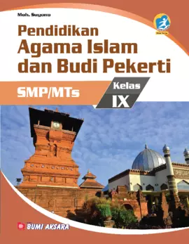 Sinopsis Singkat Buku Pendidikan Agama Islam dan Budi Pekerti Kelas IX SMP/MTs Buku ini merupakan panduan belajar yang dirancang untuk memenuhi kebutuhan siswa kelas IX SMP/MTs dalam mempelajari mata pelajaran Pendidikan Agama Islam (PAI) dan Budi Pekerti. Buku ini disusun berdasarkan Peraturan Menteri Pendidikan dan Kebudayaan Republik Indonesia Nomor 24 tahun 2016 tentang Standar Kompetensi Lulusan (SKL) untuk tingkat Sekolah Menengah Pertama (SMP/MTs). Buku ini bertujuan untuk membantu siswa memahami ajaran Islam secara mendalam, sekaligus mengembangkan sikap spiritual, sosial, dan keterampilan yang sesuai dengan nilai-nilai agama dan kehidupan bermasyarakat. Buku ini terdiri dari berbagai kompetensi inti dan kompetensi dasar yang mencakup empat aspek utama: Sikap Spiritual, Sikap Sosial, Pengetahuan, dan Keterampilan. Dalam bagian Sikap Spiritual, siswa diharapkan mampu meyakini dan menghayati ajaran agama Islam, seperti kepercayaan terhadap tradisi Islam Nusantara, optimisme, ikhtiar, tawakal, serta ketaatan terhadap perintah Allah dan Rasul-Nya. Sementara itu, dalam Sikap Sosial, siswa diwajibkan menunjukkan perilaku yang mencerminkan nilai-nilai Islam seperti peduli lingkungan, empati, dan cinta tanah air. Pada bagian Pengetahuan, siswa akan mempelajari berbagai ayat Al-Qur’an dan Hadis yang berkaitan dengan optimisme, ikhtiar, tawakal, serta nilai-nilai sosial budaya dalam Islam. Di sisi lain, dalam Keterampilan, siswa diharapkan mampu membaca, menafsirkan, dan menyajikan ayat-ayat Al-Qur’an secara tartil, serta memahami makna dan implementasi ajaran Islam dalam kehidupan sehari-hari, seperti dalam hal penyembelihan hewan, zakat, kurban, dan akikah. Selain itu, buku ini juga mengajarkan siswa untuk melaksanakan ibadah haji dan umrah sebagai perintah Allah, serta menghargai peran orang tua dan guru sebagai bagian dari ajaran Islam. Dalam konteks kehidupan sehari-hari, siswa diharapkan mampu menunjukkan perilaku jujur, disiplin, tanggung jawab, dan peduli terhadap lingkungan serta sesama. Buku ini dilengkapi dengan berbagai kegiatan yang dirancang untuk memperkaya pemahaman siswa, baik melalui pembacaan ayat Al-Qur’an, hafalan, maupun penyajian keterkaitan antara ajaran agama dengan kehidupan bermasyarakat. Buku ini juga berisi petunjuk untuk guru dalam mengimplementasikan materi ini secara efektif sesuai dengan kondisi dan kebutuhan siswa di sekolah. Dengan struktur yang jelas, penjelasan yang komprehensif, dan pendekatan yang relevan dengan konteks kehidupan sehari-hari, buku ini bertujuan untuk membentuk generasi muda yang beriman, berakhlak, dan berkepribadian tinggi, serta mampu berkontribusi positif dalam masyarakat.