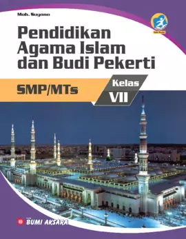 Sinopsis Buku Pendidikan Agama Islam dan Budi Pekerti Kelas VII SMP/MTs Buku ini merupakan karya penulis Moh. Suyono dan telah diedit oleh Cepi Kamaludin, yang dirancang untuk mendukung pelajaran Pendidikan Agama Islam dan Budi Pekerti di tingkat SMP/MTs kelas VII. Buku ini disusun berdasarkan Peraturan Menteri Pendidikan dan Kebudayaan Republik Indonesia Nomor 24 Tahun 2016 tentang Kompetensi Inti dan Kompetensi Dasar Pelajaran pada Kurikulum 2013. Buku ini bertujuan untuk membantu siswa memahami dan menghayati ajaran agama Islam secara mendalam, sekaligus melatih sikap budi pekerti yang baik dalam kehidupan sehari-hari. Buku ini mencakup berbagai topik yang relevan dengan keimanan, seperti terbiasa membaca Al-Qur’an, menghayati nilai-nilai keimanan seperti kepercayaan kepada Allah, malaikat, dan ketaatan dalam beribadah. Selain itu, buku ini juga membahas tentang perjuangan Nabi Muhammad Saw. dalam masa Makkah dan Madinah, serta mengenalkan para Khulafa Al-Rasyidun sebagai teladan dalam menjalankan risalah Islam. Buku ini dirancang agar siswa dapat belajar secara aktif, baik secara individual maupun kelompok, dan mengembangkan sikap percaya diri, disiplin, serta rasa peduli terhadap sesama dan lingkungan. Penulis juga menekankan pentingnya suasana belajar yang menyenangkan, kreatif, dan tidak membosankan, sehingga pelajaran agama Islam menjadi lebih bermakna dan relevan dalam kehidupan sehari-hari. Dengan pendekatan yang terstruktur dan berbasis kurikulum, buku ini menjadi alat bantu yang efektif untuk memperkaya pemahaman siswa tentang agama Islam dan nilai-nilai budi pekerti yang sejalan dengan ajaran Islam.