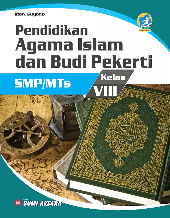 Sinopsis Buku Pendidikan Agama Islam dan Budi Pekerti Kelas VIII Buku ini merupakan buku pelajaran yang dirancang untuk siswa SMP/MTs kelas VIII, berdasarkan Peraturan Menteri Pendidikan dan Kebudayaan Republik Indonesia Nomor 24. Buku ini terdiri dari berbagai bab yang membahas berbagai aspek penting dalam pendidikan agama Islam dan budi pekerti. Isi buku mencakup pelajaran tentang ajaran agama Islam, seperti kisah-kisah hikmah, dalil dari Al-Qur’an dan hadis, serta kisah-kisah yang dapat dijadikan pelajaran dalam kehidupan sehari-hari. Selain itu, buku ini juga membahas tentang perilaku yang dianjurkan dalam kehidupan seorang muslim, seperti perilaku jujur, adil, amanah, dan gemar membaca. Buku ini juga mencakup tugas-tugas individu dan kelompok yang bertujuan untuk melatih kemampuan siswa dalam memahami dan menerapkan pengetahuan yang diperoleh, serta mengembangkan sikap dan perilaku yang sesuai dengan ajaran agama Islam. Buku ini juga dilengkapi dengan informasi tentang sejarah perkembangan ilmu pengetahuan di masa Bani Umayah dan masa Abbasiyah, yang menunjukkan bagaimana agama Islam berkembang seiring dengan perkembangan ilmu pengetahuan dan teknologi. Isi Buku: 1. Kisah Hikmah - Kisah tentang ahli ibadah yang terjebak dalam ujian dari seorang perempuan, yang berisi pelajaran tentang kesabaran, zuhud, dan ketaqwaan. - Kisah-kisah yang mengandung hikmah dan pelajaran tentang perilaku yang dianjurkan dalam agama Islam, seperti menjauhi minuman keras, judi, dan pertengkaran. 2. Dalil Al-Qur’an dan Hadis tentang Zuhud - Penjelasan tentang dalil Al-Qur’an dan hadis yang menjelaskan makna zuhud, yaitu sikap rendah hati, hemat, dan hidup sederhana. 3. Tugas Individu dan Kelompok - Tugas individu yang bertujuan untuk melatih kemampuan siswa dalam membaca dan memahami ayat-ayat Al-Qur’an, seperti QS. Al-Furqan (25): 63 dan QS. Al-Isra’ (17): 26-27. - Tugas kelompok yang bertujuan untuk melatih kerja sama dan kemampuan berpikir kritis dalam menyelesaikan masalah. 4. Kompetensi Inti dan Kompetensi Dasar - Penjelasan tentang kompetensi inti dan kompetensi dasar yang harus dicapai oleh siswa dalam pelajaran Pendidikan Agama Islam dan Budi Pekerti. - Penjelasan tentang cara menunjukkan perilaku yang sesuai dengan ajaran agama Islam, seperti perilaku amanah, jujur, adil, dan gemar membaca. 5. Sejarah Perkembangan Ilmu Pengetahuan di Masa Bani Umayah dan Abbasiyah - Penjelasan tentang bagaimana agama Islam berkembang seiring dengan perkembangan ilmu pengetahuan dan teknologi di masa Bani Umayah dan masa Abbasiyah. 6. Konten Penunjang - Informasi tentang cara melaksanakan salat sunah berjamaah dan munfarid, serta cara melaksanakan sujud syukur, sujud tilawah, dan sujud sahwi. - Penjelasan tentang cara menjalankan puasa wajib dan sunah, serta cara memahami ketentuan makanan dan minuman yang halal dan haram. 7. Penutup - Penjelasan tentang pentingnya membaca dan memahami ajaran agama Islam sebagai bentuk implementasi dalam kehidupan sehari-hari. Buku ini dirancang untuk membantu siswa memahami dan menerapkan ajaran agama Islam secara praktis, sekaligus mengembangkan sikap dan perilaku yang baik dalam kehidupan sehari-hari. Buku ini juga berisi berbagai latihan dan tugas yang bertujuan untuk melatih kemampuan siswa dalam berpikir kritis, kerja sama, dan keterampilan membaca.
