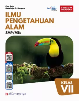 Buku Ilmu Pengetahuan Alam Kelas VII ini dibuat berdasarkan Capaian Pembelajaran Kurikulum Merdeka dengan penyajian yang mendekatkan siswa dengan ilmu pengetahuan sehingga siswa dapat melihat penerapan ilmu pengetahuan dalam kehidupan sehari sehari Fenomena yang terdapat di lingkungan sekitar merupakan sumber belajar bagi siswa Buku ini merupakan buku referensi sekaligus buku yang memuat banyak aktivitas siswa baik yang dilakukan secara perorangan ataupun berkelompok sehingga siswa lebih aktif dalam pembelajaran Buku ini dilengkapi dengan literasi digital yang disajikan dengan ikon bas bumi aksara smart dimana siswa siap belajar dengan teknologi bas bumi aksara smart terdiri atas Smart Learning QR Code untuk materi pembelajaran interaktif video youtube dan situs situs info update Terdapat di dalam materi pembahasan Smart Test QR Code untuk soal PAS 1 soal PAS 2 dan soal AKM Kelas Terdapat pada kover buku Smart Quiz QR Code untuk soal latihan akhir bab Terdapat pada akhir setiap bab Dengan adanya bas bumi aksara smart siswa diharapkan mempunyai kemampuan belajar mandiri serta menguji kemampuan dan pemahaman siswa terhadap materi Dengan mempelajari buku ini diharapkan dapat meningkatkan kemampuan berpikir siswa sehingga dapat memecahkan masalah yang ditemukan dalam kehidupan sehari hari Untuk mengakses konten konten dalam bas bumi aksara smart unduh aplikasi dari QR Code pada kover depan buku