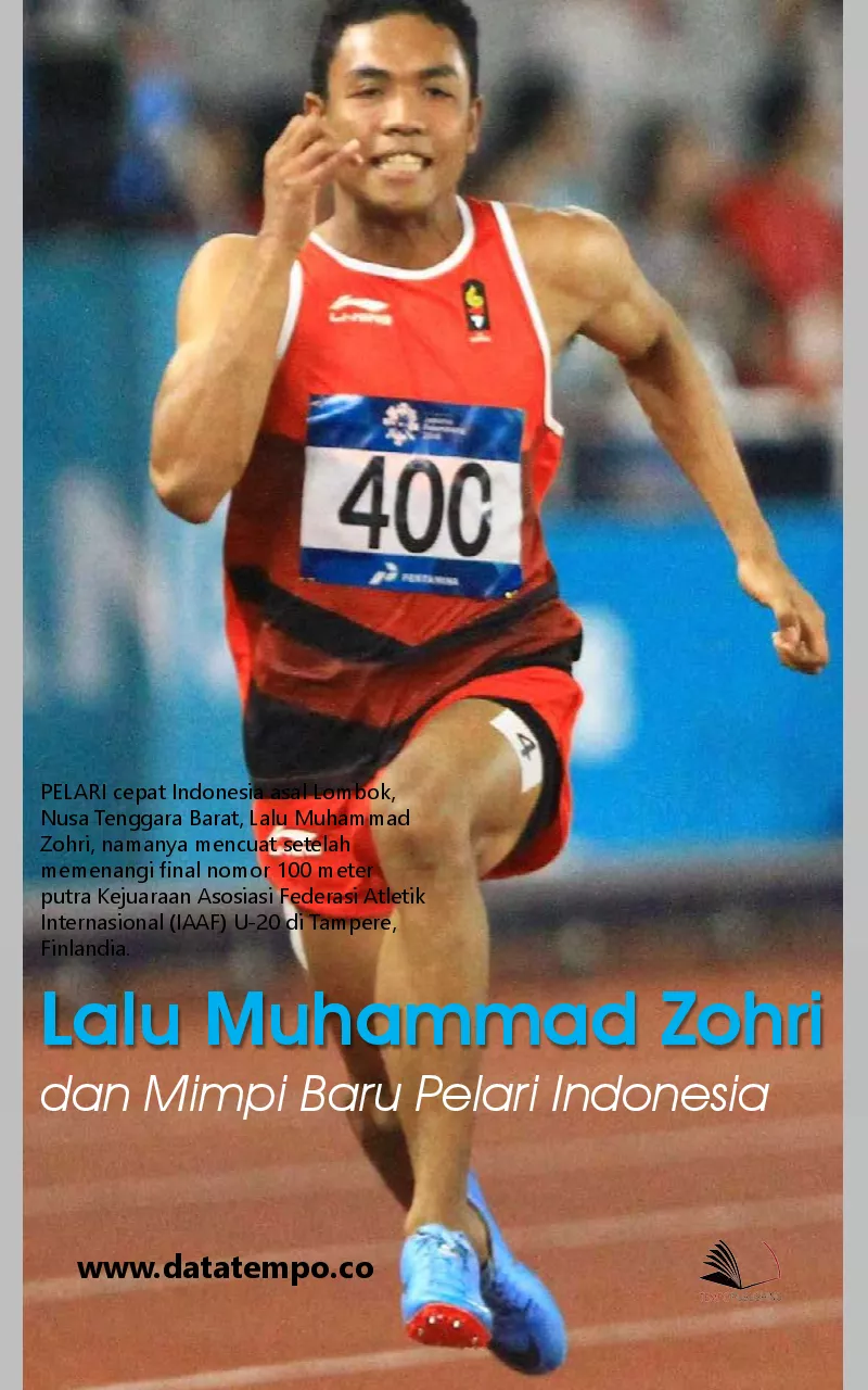 PELARI cepat Indonesia asal Lombok Nusa Tenggara Barat Lalu Muhammad Zohri namanya mencuat setelah memenangi final nomor 100 meter putra Kejuaraan Asosiasi Federasi Atletik Internasional IAAF U 20 di Tampere Finlandia