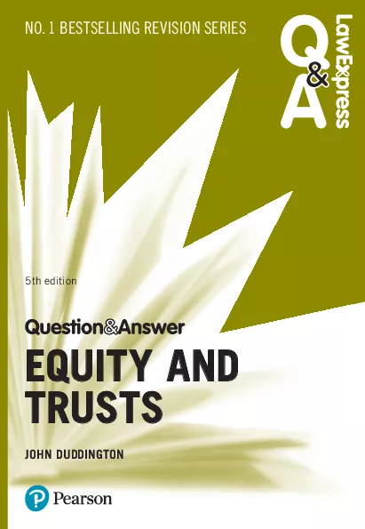 Maximise your marks for every answer you write withLaw Express Question and Answer This series is designed to help you understand what examiners are looking for focus on the question being asked and make your answers stand out Seehow an expert craftsanswersto up to 50 questions on Equity Trusts Discoverhow and why different elements of the answer relate to the question in accompanyingGuidance Plananswers quickly and effectively usingAnswer plansandDiagram plans Gainhigher marks with tips for advanced thinking inMake your answer stand out Avoidcommon pitfalls withDon t be tempted to Compareyour responses using theTry it yourselfanswer guidance on the companion website Practiceanswering questions and discover additional resources to support you in preparing for exams on theCompanion website
