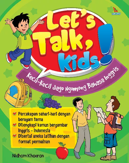Bercakap cakap adalah kemampuan yang dimiliki anak anak sejak usia dini Anak anak terbiasa memakai bahasa ibu atau bahsa di lingkungan keluarga Namun anak anak juga bisa dilatih bercakap cakap dengan bahasa asing salah satunya bahasa Inggris Buku ini memuat percakapan sederhana dalam bahasa Inggris Dengan materi yang sederhana dan dilengkapi ilustrasi yang menarik anak anak akan mudah bercakap cakap dalam bahasa Inggris Selain itu buku ini dilengkapi kumpulan kosakata bahasa Inggris dan berbagai latihan sederhana Belajar bahasa Inggris tidak lagi sulit dengan bantuan buku ini Anak anak pun akan lebih mudah mempraktikkannya dalam kehidupan sehari hari