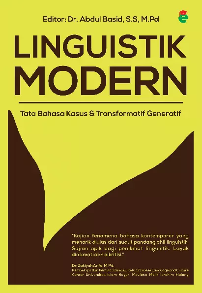 Sinopsis Buku Linguistik Modern: Tata Bahasa Kasus dan Transformatif Generatif Buku ini merupakan kumpulan artikel yang ditulis oleh mahasiswa Program Studi Bahasa dan Sastra Arab, Fakultas Humaniora, Universitas Islam Negeri Maulana Malik Ibrahim Malang, angkatan tahun 2016. Artikel-artikel dalam buku ini merupakan hasil tugas akhir mata kuliah Linguistik Modern pada semester 7 Strata 1 (S1). Buku ini hadir sebagai upaya untuk memperkenalkan dan mengembangkan studi linguistik modern, khususnya dalam bidang tata bahasa kasus dan tata bahasa transformatif generatif. Buku ini juga mencerminkan komitmen para penulis dan pembimbing untuk meningkatkan kemampuan kepenulisan ilmiah mahasiswa, yang merupakan salah satu kompetensi penting dalam dunia akademik. Buku ini tidak hanya memberikan wawasan akademik, tetapi juga menjadi sumber rujukan dan wacana baru bagi para mahasiswa, peneliti, dan pecinta linguistik. Dengan memperkenalkan pendekatan *research based learning*, buku ini diharapkan dapat memotivasi dan menginspirasi para pembaca untuk terus berkarya dan mengembangkan kajian linguistik secara lebih mendalam.