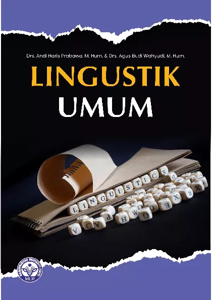 Buku ajar Linguistik Umum ini terdiri atas delapan bab Pada bab pertama berisi pendahuluan Bab kedua dibahas tentang ilmu linguistik Kemudian pada bab tiga dilanjutkan pembahasan mengenai bahasa sebagai objek linguistik Pada bab keempat dibahas mengenai fonologi Bab lima berisi pembahasan mengenai morfologi Selanjutnya bab enam dibahas tentang sintaksis Dilanjutkan bab tujuh dibahas mengenai semantik Terakhir pada bab delapan berisi sejarah dan aliran linguistik Buku ini untuk membentu para mahasiswa yang akan menempuh mata kuliah fonologi morfologi sintaksis dan semantik di program studi bahasa dan sastra pada khususnya