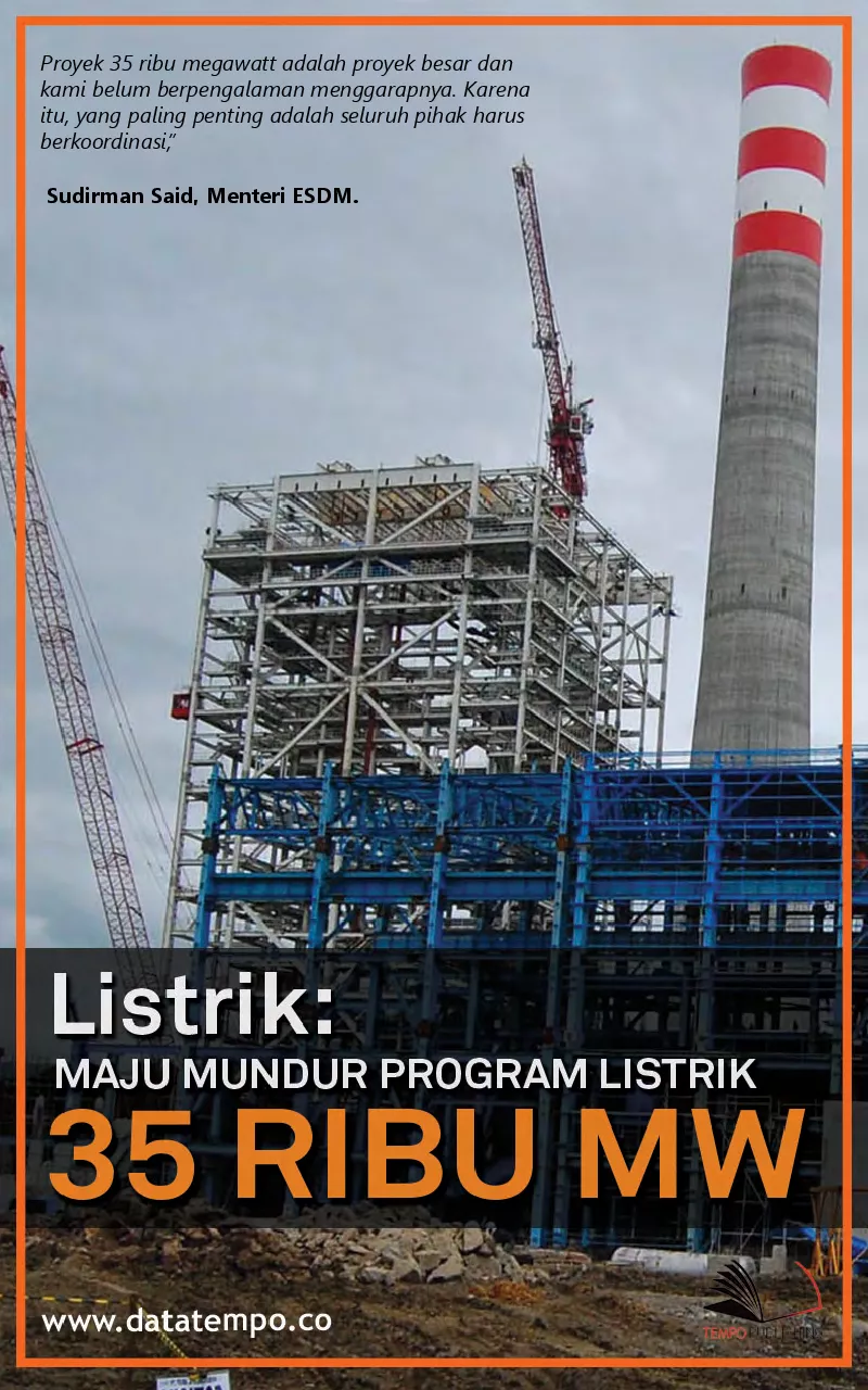 JAKARTA Menteri Energi dan Sumber Daya Mineral Sudirman Said menyatakan proyek pembangunan pembangkit listrik 35 ribu megawatt MW berjalan sedikit lebih lambat daripada yang ditargetkan Dia mengatakan hambatan utamanya ada pada koordinasi di antara pemangku kepentingan
