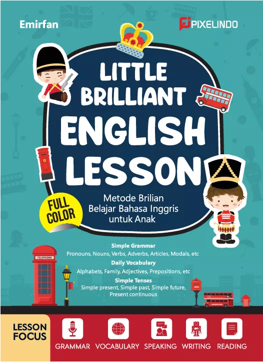 Bahasa Inggris sudah menjadi hal yang harus dikuasai hampir semua orang dewasa ini tak terkecuali bagi anak usia Taman Kanak Kanak dan Sekolah Dasar Buku ini diperuntukkan bagi mereka para pemula yang ingin jago bahasa Inggris Bukan sekadar memperkenalkan vocabulary atau kosakata namun juga grammar bahasa Inggris yang menjadi inti dari bahasa Inggris itu sendiri Meski membahas tentang grammar sekaligus vocabulary nya buku ini dikemas dengan sangat menarik dengan bahasa yang pas untuk pemula disertai ilustrasi full color yang tentu saja membuat anak anak semakin tertarik mempelajari materinya Mudah mudahan buku ini dapat lebih berguna karena lebih memberikan sesuatu yang seharusnya mereka tahu yaitu tentang grammar lebih dari sekadar tebak tebakkan vocabulary saja yang sebenarnya bisa dicari di dalam kamus
