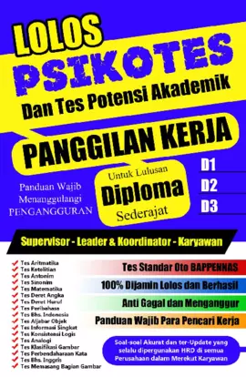 Sinopsis Buku: Buku ini merupakan panduan lengkap dan praktis untuk mempersiapkan diri menghadapi berbagai jenis tes psikotes dan TPA yang sering digunakan dalam proses rekrutmen kerja, terutama untuk lulusan Diploma. Buku ini dirancang untuk membantu Anda meningkatkan kemampuan dalam berbagai bidang seperti perbendaharaan kata, pemahaman analogi, sinonim, antonim, ketelitian, serta kemampuan matematika dan logika. Selain itu, buku ini juga mencakup soal-soal latihan yang relevan dengan tes bahasa Indonesia dan bahasa Inggris, serta tes deret angka dan huruf. Dengan berbagai topik yang disusun secara terstruktur, buku ini dapat menjadi referensi utama bagi pelamar kerja yang ingin meningkatkan kemampuan komunikasi, pemecahan masalah, dan kecermatan dalam menjawab soal-soal tes. Buku ini juga dilengkapi dengan kunci jawaban untuk memudahkan pembelajaran dan evaluasi diri. Dengan mempelajari dan memahami materi dalam buku ini, Anda akan lebih siap dan percaya diri menghadapi ujian psikotes dan TPA, baik dalam skala nasional maupun perusahaan tertentu.