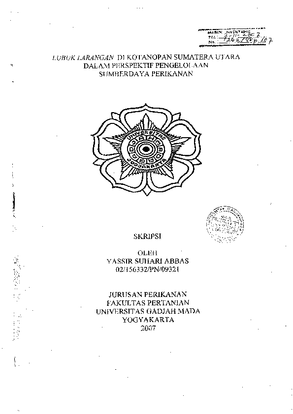 LUB UK LARANGAN DI KOTANOPAN SUMATERA UTARA DALAM PERSPEKTIF PENGELOLAAN SUMBERDAYA PERIKANAN Yassir Suhari Abbas Fakultas Pertanian UGM Konten Lokal Konten Lokal 48917