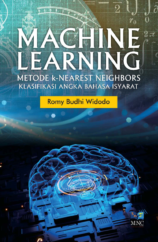 Sinopsis Buku: Buku ini menjelaskan tentang penerapan metode *k-Nearest Neighbors (kNN)* dalam bidang *machine learning* untuk melakukan klasifikasi bahasa isyarat. Buku ini menggabungkan teori dan praktik, dengan fokus pada penggunaan bahasa pemrograman Python untuk membangun model prediktif yang mampu mengenali dan mengklasifikasikan gerakan tangan berupa bahasa isyarat. Data yang digunakan berasal dari sensor tekuk yang terpasang pada sarung tangan, yang dikumpulkan dari Pusat Studi Human-Machine Interaction (HMI), Program Studi Teknik Informatika, Universitas Ma Chung. Buku ini juga menjelaskan proses pengembangan model *kNN* secara rinci, mulai dari tahapan awal seperti impor library, pengambilan dataset, analisis eksploratif data (EDA), pemisahan data, pembersihan data, serta penerapan algoritma sebelumnya. Selain itu, buku ini mengeksplorasi berbagai metrik penilaian kinerja model seperti akurasi, *confusion matrix*, *classification report*, serta *MAE* dan *RMSE*. Seluruh materi disajikan secara terstruktur dan mudah dipahami, baik bagi pemula maupun bagi yang ingin memperdalam pemahaman tentang *machine learning* dan penerapannya dalam pengenalan bahasa isyarat. Buku ini menjadi referensi yang komprehensif bagi mahasiswa, peneliti, dan pengembang yang tertarik dalam bidang kecerdasan buatan dan interaksi manusia dengan mesin.