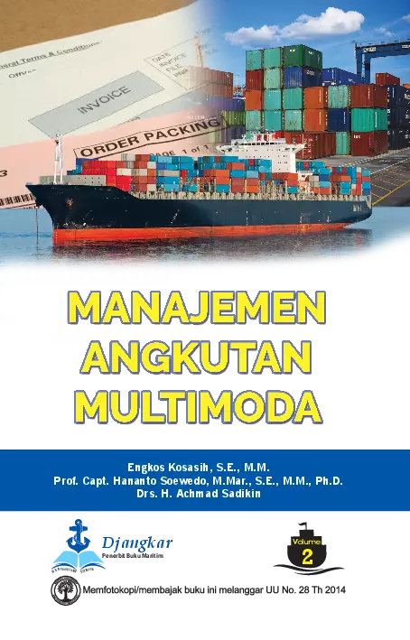 Buku Manajemen Angkutan Multimoda Volume 2 membahas tentang perdagangan domestik dan internasional moda angkutan perairan moda angkutan jalan moda angkutan kereta api moda angkutan udara pengelolaan peti kemas masalah kepelabuhanan masalah kepabeanan masalah pemasaran masalah logistik distribusi pergudangan prosedur tuntutan kerugian atau klaim dan asuransi