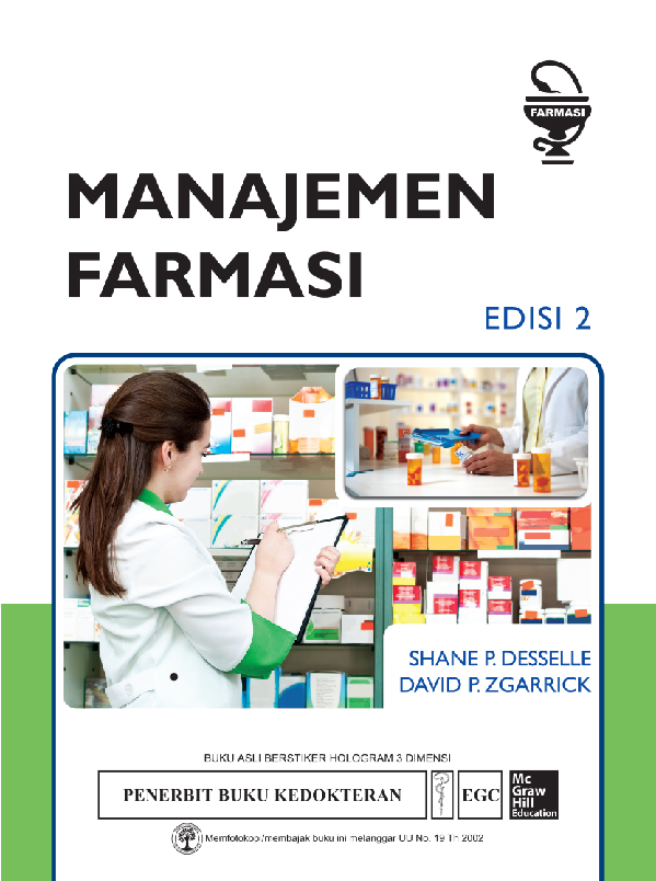 Buku ini menjelaskan berbagai topik manajemen farmasi yang mendasar dalam semua ruang lingkup praktik farmasi Isi buku mencakup semuanya mulai dari manajemen operasional hingga pembayaran dengan pihak asuransi misalnya Medicare di Amerika Lebih dari buku teks lain buku Manajemen Farmasi ini menggambarkan tantangan yang dihadapi apoteker saat ini Buku ini dilengkapi dengan rekomendasi para ahli yang memberikan prinsip prinsip relevan dengan semua aspek praktik farmasi dari manajemen keuangan hingga manajemen stres personel Setelah lulus dari universitas para farmasis akan memerlukan buku Manajemen Farmasi Ini untuk membuat praktik farmasinya lebih profesional dan juga untuk mengembangkan pribadinya