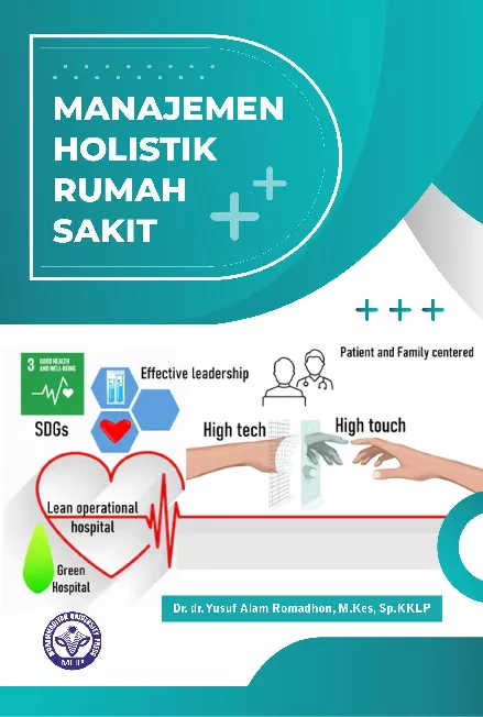 Buku monograf ini merupakan hasil studi kepustakaan dan diskusi dengan para praktisi manajemen rumah sakit untuk mengembangkan model rumah sakit khas Indonesia selaras dengan transformasi kesehatan dan pencapaian sustainable development goal rumah sakit yang hijau rendah emisi pencemaran sustainable secara bisnis menyentuh hati pasien secara personal dan keluarga menciptakan outcome layanan yang paling optimal melalui kepemimpinan dan manajerial yang efektif Buku ini memperkenalkan konsep moment of the truth pada point of touch dalam pelayanan di rumah sakit Kehadiran teknologi digital informasi dan komunikasi yang mempunyai karakteristik high tech diintegrasikan dengan konsep pelayanan holistik berpusat pada pasien dan Islami diharapkan akan menghasilkan model pelayanan yang high touch Pelayanan kesehatan di rumah sakit dengan model ini diharapkan menjadi model alternatif dalam menyajikan pelayanan di layanan tingkat lanjut terkelola secara personalized ramah keluarga menghasilkan outcome yang optimal