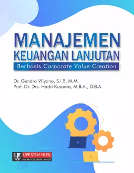 Sinopsis Buku: Buku *Manajemen Keuangan Lanjutan: Berbasis Corporate Value Creation* ini merupakan edisi pertama yang dirilis pada Januari 2017, dan telah mengalami cetakan kedua pada Februari 2021. Buku ini ditulis oleh Dr. Gendro Wiyono, S.I.P., M.M. dan Prof. Dr. Drs. Hadri Kusuma, M.B.A., D.B.A., serta diterbitkan oleh UPP STIM YKPN. Buku ini dirancang untuk memberikan pemahaman mendalam tentang ilmu manajemen keuangan, khususnya dalam konteks penciptaan nilai perusahaan (*Corporate Value Creation*). Buku ini terbagi menjadi tiga bagian utama. Bagian pertama membahas konsep dasar teori keuangan, termasuk perkembangan teori pasar modal sempurna, analisis diskonto arus kas, teori struktur modal dan kebijakan dividen, serta berbagai teori lain seperti teori portofolio, model penetapan harga aset keuangan, teori harga opsi, hipotesis pasar efisien, teori agen, dan teori asimetri informasi. Bagian kedua fokus pada manajemen sumber dana, meliputi sumber dana jangka pendek, jangka menengah, dan jangka panjang, seperti kredit usaha, kredit investasi, sewa guna usaha, hipotek, obligasi, pinjaman dari lembaga keuangan, saham, dan struktur modal serta leverage. Bagian ketiga menjelaskan tentang penggunaan dana yang diinvestasikan, termasuk manajemen modal kerja, siklus konversi kas, dan kebijakan investasi modal kerja. Seluruh materi dalam buku ini disusun dengan pendekatan yang menekankan keterkaitan antar konsep, serta mengintegrasikan teori keuangan yang relevan dengan praktik nyata di dunia bisnis. Buku ini menjadi sumber referensi yang komprehensif bagi mahasiswa, akademisi, dan praktisi yang ingin memperdalam pemahaman mereka tentang manajemen keuangan dan penciptaan nilai perusahaan.