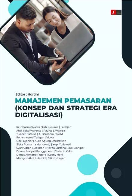 Buku ini tersusun atas dua puluh bab yang diberi judul Manajemen Pemasaran Konsep dan Strategi Era Digitalisasi Tiap tiap bab dibahas secara lengkap konsep yaitu dasar manajemen pemasaran perencanaan dan fungsi kegiatan pemasaran konsep inti pemasaran strategi pemasaran berorientasi pelanggan strategi pemasaran era digital lingkungan bisnis digitalisasi marketing era industri 4 0 perkembangan e commerce dalam digitalisasi pemasaran konsep brand equity brand loyalty dan customer loyalty pengambilan keputusan konsumen dalam pembelian bauran pemasaran dan penerapannya dalam bisnis strategi segmentation targeting dan positioning membangun loyalitas pelanggan melalui kualitas pelayanan menciptakan nilai dan kepuasan peanggan komunikasi pemasaran digital siklus hidup produk dan karakteristiknya strategi peningkatan kualitas produk desain dan inovasi produk dan penentuan harga produk