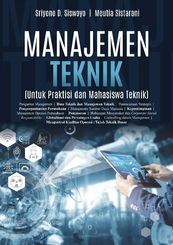 Sinopsis Buku: Buku ini merupakan karya ilmiah yang ditulis dengan tujuan untuk memberikan pemahaman menyeluruh mengenai konsep dan penerapan manajemen teknik bagi praktisi dan mahasiswa teknik. Buku ini disusun dengan pendekatan siklus POAC (Planning, Organizing, Actuating, Controlling) sebagai kerangka utama dalam memandu pembahasan, sehingga memudahkan pembaca dalam memahami proses manajemen secara sistematis. Dalam buku ini, pembahasan dimulai dari perencanaan (Planning) yang mencakup perumusan tujuan, analisis lingkungan, dan penyusunan strategi. Selanjutnya, bab-bab berikutnya membahas pengorganisasian (Organizing) yang mencakup pengorganisasian perusahaan, manajemen sumber daya manusia, dan kepemimpinan. Bab-bab berikutnya menjelaskan proses actuating yang meliputi manajemen operasi perusahaan, pemasaran, hubungan masyarakat, tanggung jawab sosial perusahaan, serta globalisasi dan persaingan usaha. Di akhir buku, bab-bab terakhir membahas proses controlling, termasuk teknik-teknik pengontrolan kualitas dalam manajemen. Untuk meningkatkan daya tarik dan pemahaman pembaca, setiap bab dimulai dengan ilustrasi cerita sederhana yang berfungsi sebagai "appetiser" dalam dunia tata boga, memperkaya pembacaan dan memberikan konteks yang lebih mendalam. Buku ini dilengkapi dengan penjelasan mengenai hak cipta dan penggunaan karya cipta dalam konteks pendidikan dan penelitian, serta menyebutkan bahwa materi dalam buku ini dapat digunakan tanpa izin selama dalam rangka pengajaran, penelitian, atau keperluan pendidikan. Sanksi pelanggaran hak cipta juga disebutkan dalam konteks hukum yang berlaku. Dengan struktur yang jelas dan penjelasan yang komprehensif, buku ini menjadi referensi yang sangat bermanfaat bagi mahasiswa teknik dan praktisi di bidang manajemen teknik.