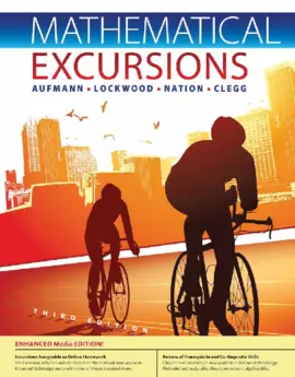 MATHEMATICAL EXCURSIONS Third Edition teaches students that mathematics is a system of knowing and understanding our surroundings For example sending information across the Internet is better understood when one understands prime numbers the perils of radioactive waste take on new meaning when one understands exponential functions and the efficiency of the flow of traffic through an intersection is more interesting after seeing the system of traffic lights represented in a mathematical form Students will learn those facets of mathematics that strengthen their quantitative understanding and expand the way they know perceive and comprehend their world We hope you enjoy the journey