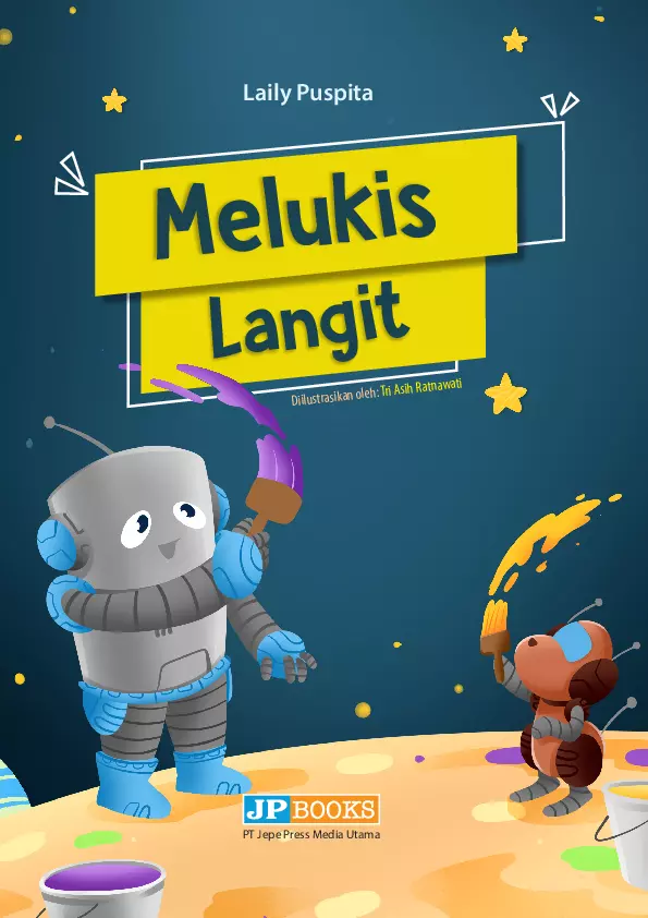 Sinopsis: Dalam buku ini, kita mengikuti kisah Robi si robot yang merasa sedih karena langit di tempat tinggalnya selalu berwarna hitam. Suatu hari, Robi mendapatkan ide hebat untuk mengubah kondisi tersebut. Dengan bantuan temannya, Jigi anjing, Robi mulai mencampur berbagai warna dasar untuk menciptakan warna-warna baru. Proses pencampuran warna ini menjadi kegiatan yang seru dan penuh kejutan, di mana setiap kombinasi menghasilkan warna yang berbeda, seperti oranye, ungu, pirus, hijau tua, hijau muda, coklat, magenta, dan burgundi. Setelah berhasil membuat banyak warna, Robi dan Jigi melukis langit yang gelap dengan warna-warna tersebut. Akhirnya, langit menjadi terang dan berwarna-warni. Buku ini mengajarkan anak-anak tentang pengenalan dan pencampuran warna melalui cerita yang menarik dan penuh imajinasi, sekaligus menginspirasi anak-anak untuk kreatif dan berani ber eksperimen.