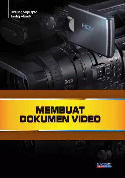 Buku berjudul Membuat Dokumen Video hadir untuk Anda Buku ini disusun sebagai bahan penunjang atau sebagai bahan pengayaan bagi siswa Sekolah Menengah Kejuruan Kompetensi Keahlian Teknik Elektronika Buku ini memuat pengoprasian kamera instalasi kamera Oleh karena itu Anda dapat belajar dengan buku praktis ini Setelah mempelajarinya Anda bisa mengoperasikan camcorder atau handycam untuk merekam gambar Kemudian Anda mengolah gambar tersebut dengan software komputer dan mengedit dengan menambahkan title narasi serta dubbing atau menghilangkan gambar gambar yang kurang bagus