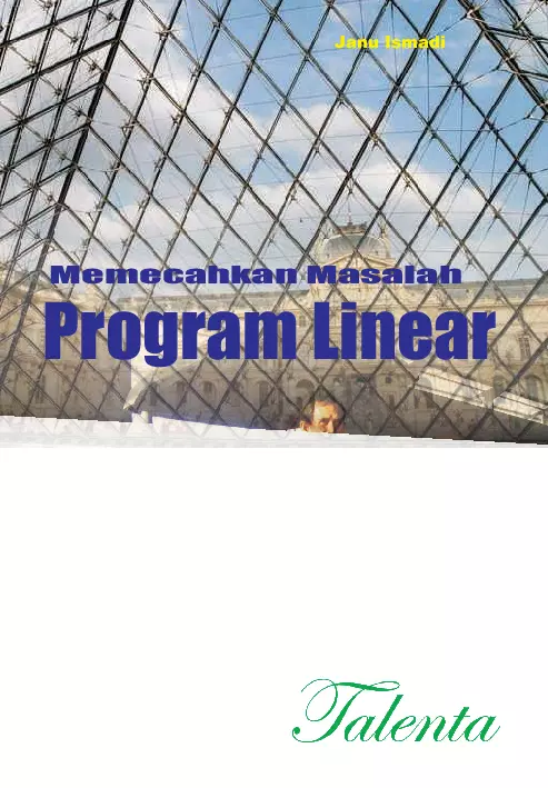 Dalam hidup sehari hari manusia cenderung untuk hidup berprinsipkan ekonomi yaitu dengan usaha sesedikit mungkin dapat memperoleh hasil sebanyak mungkin Banyak hal yang dicari nilai optimumnya misalnya pendapatan yang maksimum ongkos yang minimum hidup yang paling nyaman dan sebagainya maka timbullah masalah optimisasi Apabila gejala yang dioptimumkan tersebut ternyata kuantitatif maka masalah optimum menjadi masalah ekstrim yang tak lain adalah maksimum dan minimum Upaya optimisasi ini dapat dimodelkan dengan program linear Apa itu program linear dan bagaimana memecahkan masalahnya Dalam buku ini kamu akan mengetahuinya Cipinang Muara F