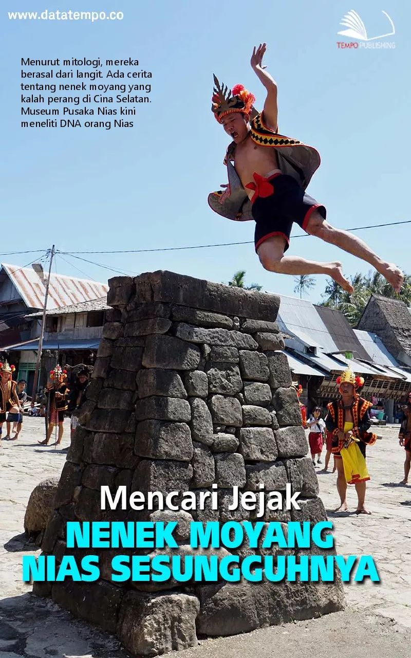 Menurut mitologi mereka berasal dari langit Ada cerita tentang nenek moyang yang kalah perang di Cina Selatan Museum Pusaka Nias kini meneliti DNA orang Nias