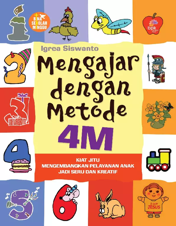 Sinopsis Buku: Buku ini adalah panduan praktis dan kreatif bagi para pelayan anak dan guru Sekolah Minggu dalam mengajar Firman Tuhan dengan cara yang menarik, menyenangkan, dan efektif. Dengan konsep Metode 4M, buku ini memberikan pendekatan inovatif untuk mengubah Ibadah Anak atau Sekolah Minggu menjadi idaman bagi anak-anak. Metode 4M dirancang untuk membantu pelayan anak dalam menyampaikan firman Tuhan secara lebih mudah, sehingga anak-anak dapat memahami dan merespons dengan hati yang gembira, sebagaimana dicontohkan dalam Amsal 17:22. Tujuan utama dari buku ini adalah membantu anak-anak menghasilkan buah-buah rohani dalam kehidupan sehari-hari, seperti peduli, murah hati, gembira, cinta Tuhan, taat, jujur, memaafkan, sabar, tekun, bertanggung jawab, toleran, dan kreatif. Buku ini juga bertujuan untuk menjaring lebih banyak pelayan anak yang akan terlibat dalam pelayanan anak, sehingga anak-anak yang menghasilkan buah yang baik juga makin bertambah. Metode 4M telah diuji coba oleh penulis dalam pelatihan guru Sekolah Minggu dan pelayanan anak di berbagai lembaga dan denominasi gereja di Indonesia. Ribuan pelayan anak dan guru Sekolah Minggu telah mengikuti pelatihan menggunakan Metode 4M, yang diharapkan akan memberikan dampak positif dalam pelayanan anak dan pengembangan iman anak-anak. Dengan buku ini, para pelayan anak diharapkan menjadi lebih cakap, kreatif, dan mampu memberitakan kebenaran Allah kepada anak-anak.