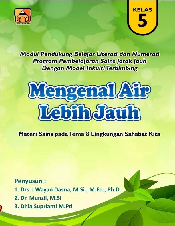Halo siswa kelas 5 Semoga anak anak masih bersemangat belajar dan berkegiatan di rumah Meskipun anak anak tidak dapat bertemu dengan guru dan teman teman kalian tetap perlu belajar dengan baik dan semangat Modul ini membantu anak anak belajar di rumah dengan melakukan penyelidikan tentang air yang membuat anak anak belajar lebih menarik dan antusias Kerjakan dan ikuti kegiatan pembelajaran yang ada pada modul ini dengan bantuan orang tua atau orang yang lebih dewasa lainnya di lingkungan rumahmu Jangan lupa juga untuk membaca setiap hari berbagai bacaan yang akan menambah wawasan anak anak Selamat belajar