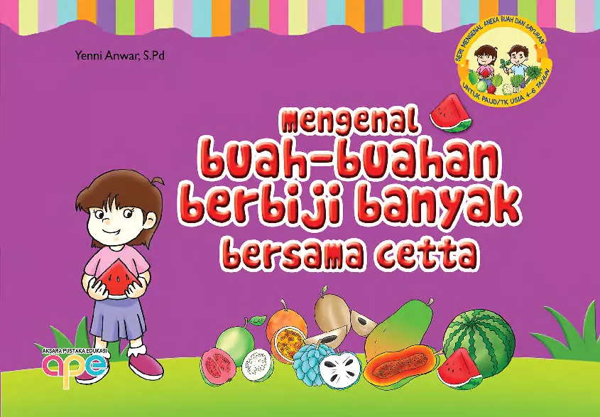 Sinopsis Singkat Buku: \"Mengenal Buah-buahan Berbiji Banyak Bersama Cetta\" Buku ini merupakan karya Yenni Anwar, S.Pd., yang ditujukan untuk anak-anak, terutama dalam usia sekolah dasar. Buku ini hadir dalam bentuk cerita yang menarik dan mudah dipahami, dengan tokoh utama berupa Cetta, seorang anak yang bersemangat dalam menjelajahi dunia alam terutama seputar buah-buahan. Buku ini mengajak anak-anak untuk mengenal berbagai jenis buah yang memiliki biji banyak, seperti jambu biji, markisa, pepaya, sawo, semangka, dan srikaya. Setiap bab menjelaskan karakteristik masing-masing buah, mulai dari bentuk, warna kulit, warna daging, jumlah biji, hingga kandungan gizi yang terdapat di dalamnya. Selain itu, buku ini juga memberikan informasi tentang cara memakan buah tersebut, seperti langsung dimakan atau dibuat jus, serta kelezatan yang ditawarkan. Buku ini juga mengajarkan anak-anak pentingnya membuang biji sebelum memakannya agar tidak mengganggu pencernaan. Dengan bahasa yang santai, penuh semangat, dan disertai ilustrasi yang menarik, buku ini menjadi media edukasi yang efektif dalam meningkatkan pengetahuan anak-anak tentang buah-buahan, sekaligus membangun kebiasaan sehat dalam mengonsumsi makanan alami. Buku ini juga dilengkapi dengan informasi terkait hak cipta, yang menunjukkan bahwa karya ini dilindungi undang-undang, sehingga memastikan kualitas dan keaslian konten yang disajikan.