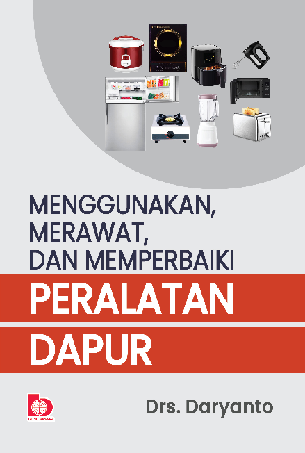 Peralatan rumah tangga khususnya peralatan dapur sangat penting penggunaannya dalam kelengkapan perabot rumah Selain perlatan listrik seperti AC mesin cuci dan lain lain penggunaan alat dapur seperti microwave kulkas blender dan sebagainya juga tidak kalah penting Agar peralatan peralatan dapur tersebut bisa tahan lama dalam jangka waktu lama sebagai pengguna harus mengetahui cara menggunakan merawat dan memperbaiki peralatan peralatan tersebut Buku ini akan membahas cara menggunakan merawat dan memperbaiki peralatan dapur dalam kehidupan rumah tangga sehari hari Buku ini cocok bagi siapa saja yang mempunyai kepentingan dan berhubungan dengan peralatan dapur sebagaimana pada daftar isi buku ini baik pria maupun wanita maupun jasa service yang bergelut di bidangnya