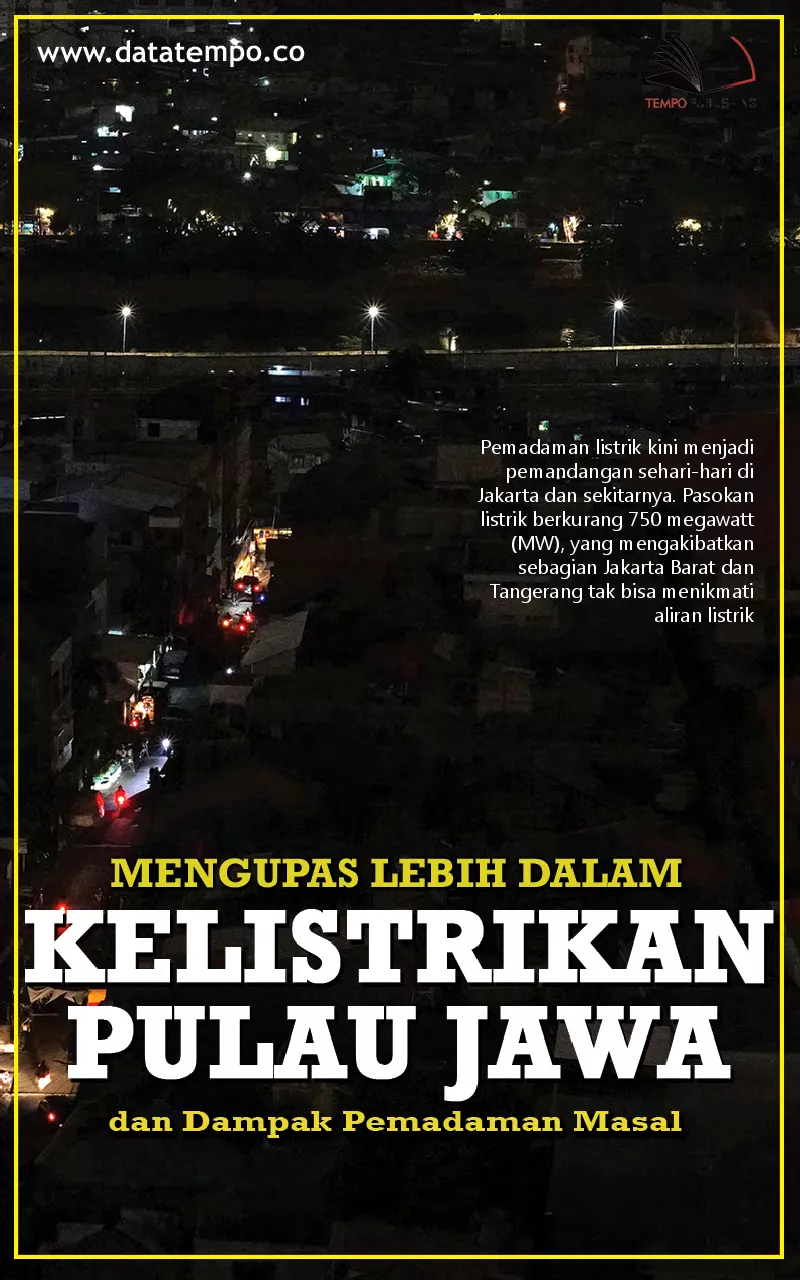JAKARTA Pemadaman listrik kini menjadi pemandangan sehari hari di Jakarta dan sekitarnya Pekan lalu pasokan listrik berkurang 750 megawatt MW yang mengakibatkan sebagian Jakarta Barat dan Tangerang tak bisa menikmati aliran listrik Pekan ini masyarakat di sekitar Tangerang kembali mengalami pemadaman lantaran energi listrik berkurang sekitar 300 megawatt