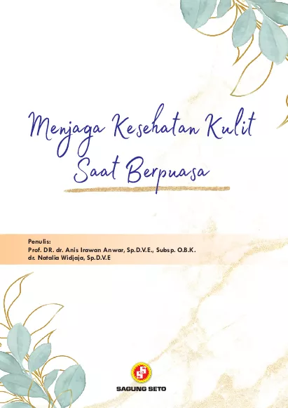 Buku ini menjelaskan tentang bagaimana menjaga kesehatan kulit saat sedang berpuasa Bagi umat Islam puasa adalah bagian dari bulan Ramadan yang melatih diri kita untuk menahan diri dari hawa nafsu Selain itu faktanya berpuasa memiliki banyak sekali manfaat untuk kesehatan Berpuasa saat Ramadan selain menjaga stamina tubuh ternyata memberikan dampak bagi kondisi kesehatan kulit Seperti kita ketahui Kecantikan dan kesehatan kulit wajah dinilai penting untuk penampilan Setelah berpuasa selama sebulan penuh masyarakat yang beragama Islam akan merayakan Hari Raya Idul Fitri saat mereka akan bertemu dengan keluarga dan kerabat Sehingga sebagian besar orang menginginkan kulit wajah yang cerah bebas kerutan tampak kencang dan bersih saat bersilahturahmi dengan keluarga dan kerabat Oleh karena itu penulis ingin membagikan cara menjaga kesehatan kulit saat berpuasa agar wajah tetap segar dan terawat selama menjalankan ibadah puasa di bulan suci Ramadhan
