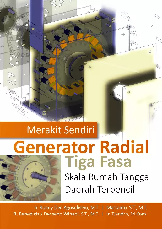 Sinopsis Buku: Buku ini merupakan hasil penelitian yang didanai oleh Direktorat Riset dan Pengabdian Masyarakat, Direktorat Jenderal Penguatan Riset dan Pengembangan, Kementerian Riset, Teknologi, dan Pendidikan Tinggi. Buku ini terdiri dari empat bab yang dirancang untuk memberikan pemahaman dasar mengenai prinsip kelistrikan dan kemagnetan, yang menjadi fondasi teoritis dalam pengembangan generator. Bab pertama membahas prinsip dasar kelistrikan dan magnetisasi, sementara bab kedua menjelaskan konsep umum mengenai generator, termasuk gaya gerak listrik induksi, torsi, inersia, daya, dan kecepatan pada generator. Bab ketiga dan keempat merupakan inti dari buku ini, yang berisi penjelasan mengenai generator radial tiga fasa yang dirancang untuk skala rumah tangga di daerah terpencil. Generator ini memiliki keunggulan dalam memenuhi kebutuhan listrik minimal, khususnya untuk penerangan, dengan putaran rendah dan daya yang tidak terlalu besar. Desain generator ini dapat menjadi solusi praktis bagi masyarakat daerah terpencil yang belum memiliki akses ke jaringan listrik utama. Gambar-gambar dalam bab ketiga dan keempat dibuat menggunakan software SolidWorks untuk memperjelas konstruksi dan komponen generator radial yang dikembangkan.