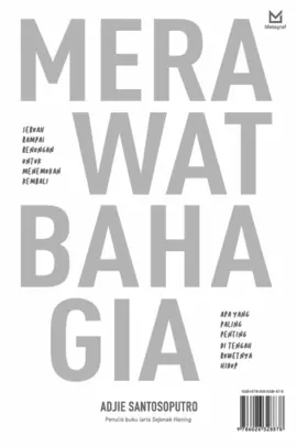 Hari hari ini variasi masalah dalam hidup seolah tak berujung apalagi di tengah rutinitas sehari hari yang makin semrawut sehingga membuat kita rentan terhadap stres Pikiran kita menjadi demikian lemah dan mudah mengembara sehingga tidak fokus dan lupa mensyukuri nikmat napas yang dihadirkan Tuhan di sini kini Kita begitu mudah untuk tidak sadar penuh dan dan sering tidak hadir utuh saat menghabiskan waktu bersama orang orang yang kita cintai Kita juga sering menyesali atas apa yang sudah terjadi dan khawatir atas apa yang akan terjadi di masa depan Akibatnya setiap hari kita terperangkap dalam ketakbahagiaan Setiap waktu kita terkungkung oleh ketaksehatan pikiran Setiap mengambil keputusan kita terjerat dengan ketakwarasan jiwa Saatnya berubah menuju hidup yang lebih sehat waras dan bahagia Merawat Bahagia adalah sebuah buku yang mengajak kita untuk lebih memahami hal hal esensial dalam yang sering kita lupakan dan abaikan