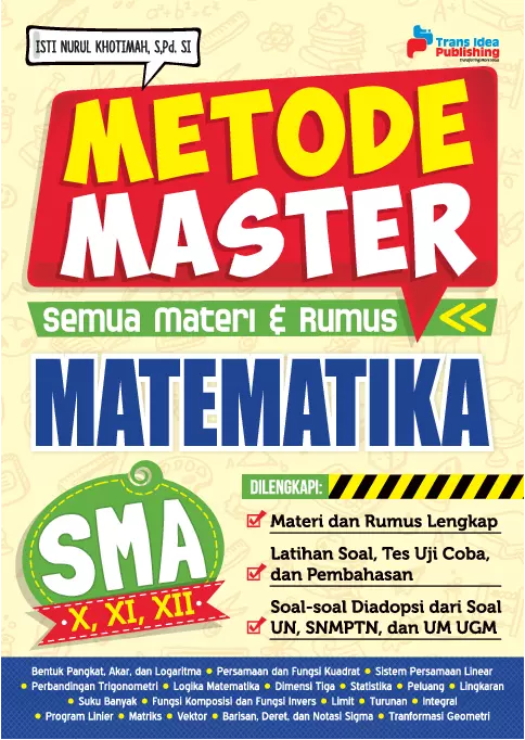 Bagi sebagian besar siswa Matematika merupakan salah satu pelajaran yang paling ditakuti Tak bisa dipungkiri bahwa Matematika memang merupakan salah satu mata pelajaran yang memusingkan Sebab selain harus menghadapi perhitungan perhitungan yang rumit siswa juga harus menghafal rumus rumus yang banyak dan beragam Hal itulah yang kemudian menjadikan Matematika sebagai momok yang ditakuti oleh sebagian besar siswa Terlebih Matematika juga menjadi mata pelajaran yang menentukan kelulusan dalam ujian nasional Para siswa menjadi semakin gelisah dan takut menghadapi pelajaran yang satu ini Kunci dari belajar Matematika adalah ketekunan dan kesungguh sungguhan Dengan belajar secara tekun dan sungguh sungguh maka Matematika akan menjadi pelajaran yang tak berbeda dengan pelajaran yang lainnya Dengan demikian menjadi jago dalam pelajaran Matematika bukanlah hal yang tak mungkin Berdasarkan alasan di atas kami menerbitkan buku ini Dengan maksud untuk memenuhi kebutuhan buku panduan belajar Matematika bagi siswa Berisi rangkuman materi Matematika untuk siswa tingkat SMA Dilengkapi dengan soal soal latihan dan soal uji coba disertai pembahasan yang dipaparkan secara detail dan mendalam Buku ini siap menemani siswa belajar dan mengantarkan siswa menjadi master dalam bidang Matematika