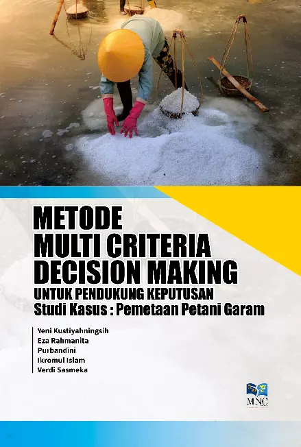Sinopsis Buku: Buku ini berjudul *“MCDM untuk Sistem Pendukung Keputusan”* dan merupakan karya dari Yeni Kustiyahningsih, Eza Rahmanita, Purbandini, Ikromul Islam, dan Verdi Sasmeka. Buku ini ditujukan untuk membantu pembaca memahami dan menerapkan metode *Multi Criteria Decision Making (MCDM)* dalam konteks sistem pendukung keputusan, terutama dalam situasi di mana masalah memiliki kondisi semi terstruktur. Buku ini menjelaskan secara rinci konsep dan aplikasi dari berbagai metode MCDM, termasuk *Fuzzy Analytic Hierarchy Process (FAHP)* dan *Technique for Order Preferences by Similarity to Ideal Solution (TOPSIS)*, serta penggunaan *Interval-Valued Fuzzy (IVF)* dalam penyelesaian masalah keputusan. Penulis juga menggambarkan langkah-langkah penelitian dan implementasi sistem pendukung keputusan dalam studi kasus nyata, khususnya dalam pemetaan petani garam. Selain itu, buku ini menyajikan pendekatan kuantitatif dalam pengambilan keputusan dengan menggunakan metode agregasi bobot kriteria dan derajat kecocokan alternatif. Buku ini juga menjelaskan peran kriteria dan alternatif dalam pengambilan keputusan, serta bagaimana menghitung indeks kecocokan fuzzy berdasarkan rating fuzzy dan bobot kriteria. Dengan bahasa yang jelas dan struktur yang terorganisir, buku ini menjadi sumber referensi yang berguna untuk akademisi, peneliti, dan praktisi yang tertarik dalam pengembangan sistem pendukung keputusan berbasis metode MCDM. Buku ini juga menyertakan daftar pustaka sebagai acuan tambahan untuk penelitian lebih lanjut.
