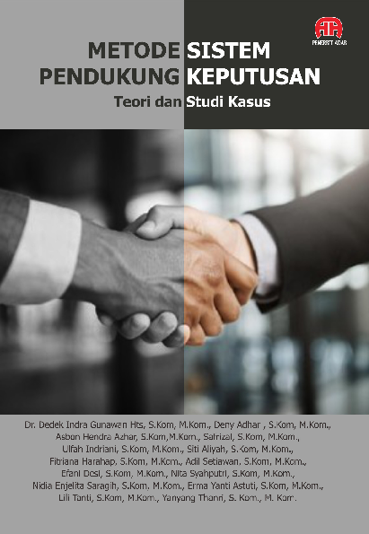 Perkembangan sistem informasi saat ini sangat membantu seorang manager pimpinan dalam mengambil keputusan Sistem Pendukung Keputusan merupakan salah satu metode komputerisasi yang dapat membantu seorang manager atau pimpinan untuk mengambil keputusan secara cepat dan akurat Ada banyak metode Sistem Pendukung Keputusan yang dapat digunakan untuk membantu seorang manager mengambil keputusan berdasarkan banyaknya kriteria yang ada Dalam buku ini membahas metode sistem pendukung keputusan secara lengkap dan sistematis serta dilengkapi dengan studi kasus Metode yang dibahas antara lain adalah Analitycal Network Process Analityc Hierarchy Process SMART SAW Weight Product TOPSIS Profile Matching Electre Promethee Demster Shafer MOORA WASPAS dan MAUT Diharapkan buku ini dapat menjadi referensi bagi mahasiswa semester akhir yang tertarik dengan sistem pendukung keputusan dalam menyelesaikan skripsi atau tugas akhir
