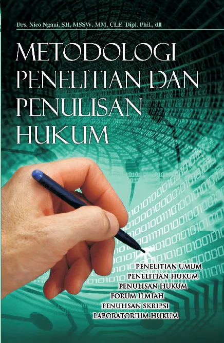 Buku yang sampai ke tangan pembaca ini tentang metodologi penelitian dan penulisan hukum yang bahasannya meliputi metodologi penelitian umum penelitian hukum penulisan hukum forum ilmiah penulisan skripsi dan laboratorium hukum Dipandang dari segi kurikulum bidang bidang yang dicakup oleh metodologi ini berdiri sendiri sendiri tetapi dari segi rentang kebulatan studi hukum ketujuh komponen itu merupakan satu kesatuan yang bersama sama mengantar para pelajar hukum dari hulu sampai ke hilir Idealnya kalau seorang mahasiswa masuk ke fakultas hukum melalui pintu bidang akademik dan administrasi maka output keluaran hasil pendidikan di fakultas hukum berproses melalui sebuah screening service center yang bernama laboratorium ilmu hukum atau laboratorium hukum tersebut