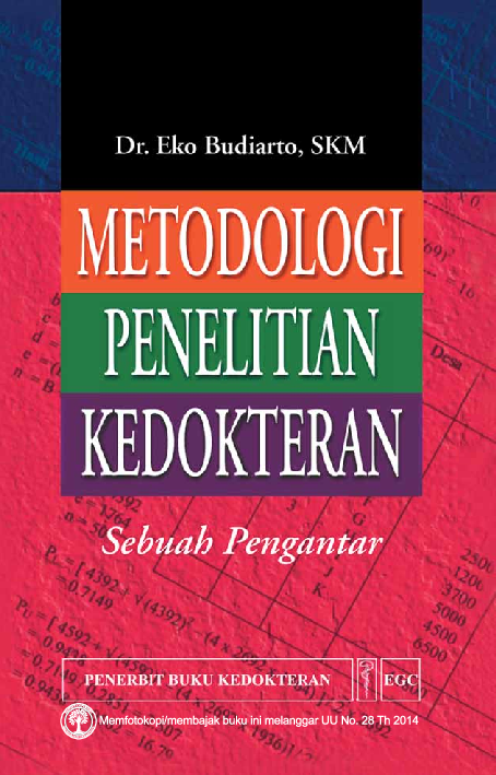Untuk melakukan penelitian dalam bidang kedokteran dan kesehatan dibutuhkan buku metodologi penelitian yang dapat digunakan sebagai acuan Buku ini menguraikan secara rinci berbagai rancangan penelitian yang banyak digunakan dalam bidang kedokteran disertai contoh contoh