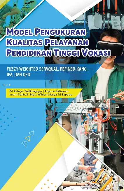 Kualitas pelayanan prima di pendidikan tinggi vokasi memiliki peran penting dalam meningkatkan loyalitas mahasiswa dan menarik calon mahasiswa baru Pendidikan tinggi vokasi yang memberikan pelayanan berkualitas tinggi cenderung memiliki tingkat turnover peserta didik yang lebih rendah serta jumlah penerimaan mahasiswa baru yang tinggi Akibatnya institusi pendidikan tinggi vokasi biasanya memiliki situasi keuangan yang lebih stabil Hal ini mendorong setiap perguruan tinggi vokasi untuk terus meningkatkan kualitas pelayanannya Baird 2011 Oleh karena itu pada buku ini akan mengukur kualitas pelayanan pendidikan tinggi vokasi dan menentukan atribut mana yang paling berpengaruh terhadap kualitas pelayanan Model pengukuran kualitas pelayanan pendidikan tinggi vokasi yang digunakan adalah Fuzzy Weighted Servqual Refined Kano IPA dan QFD Selanjutnya prioritas pembenahan akan ditetapkan serta langkah langkah teknis untuk perbaikan kualitas pelayanan akan dirumuskan Buku ini tidak hanya memberikan pemahaman yang mendalam tentang kebutuhan dan harapan mahasiswa tetapi juga menawarkan solusi praktis yang dapat diterapkan untuk meningkatkan kualitas layanan di perguruan tinggi vokasi