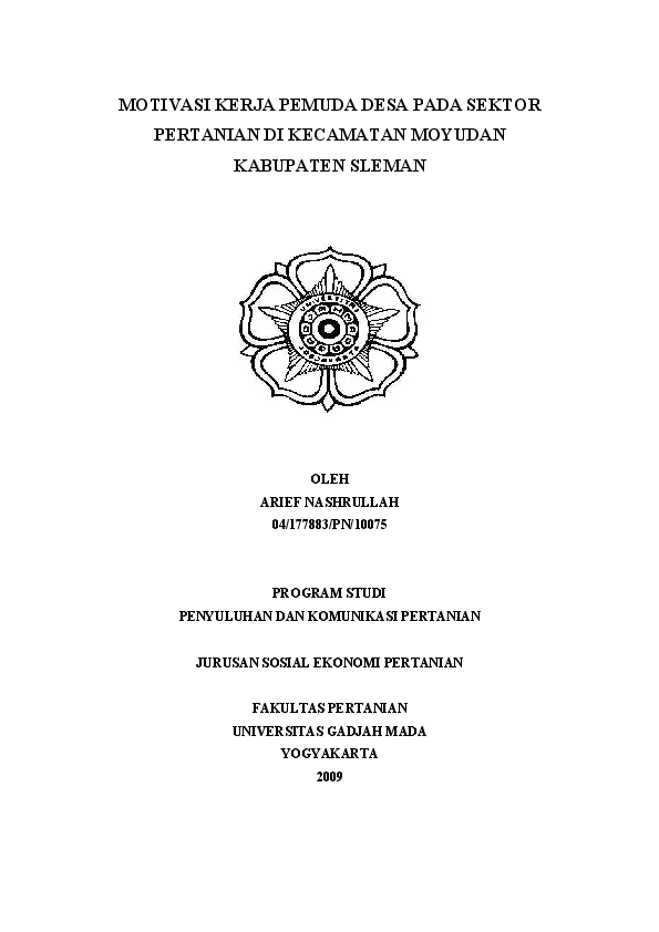 Motivasi Kerja Pemuda Desa Pada Sektor Pertanian Di Kecamatan Moyudan Kabupaten Sleman Arief Nashrullah Fakultas Pertanian UGM Konten Lokal Konten Lokal 31175