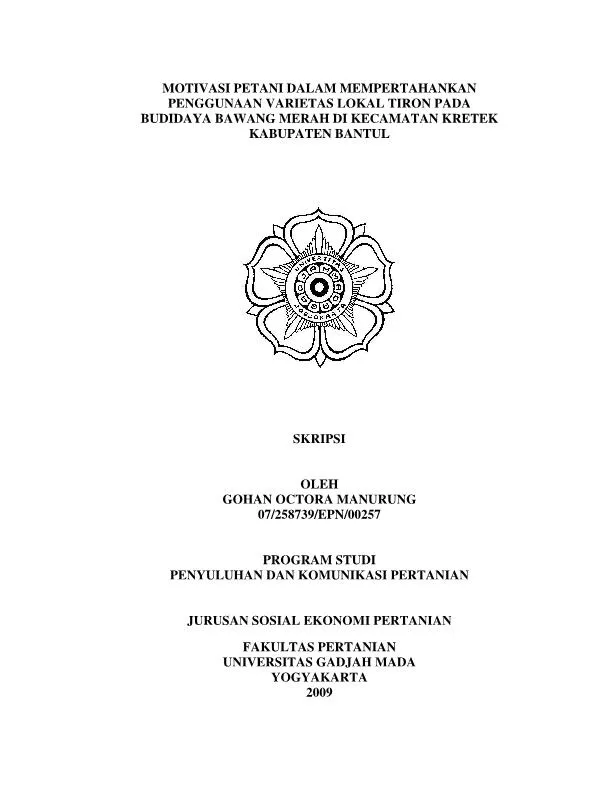 Motivasi Petani Dalam Mempertahankan Penggunaan Varietas Lokal Tiron Pada Budidaya Bawang Merah Di Kecamatan Kretek Kabupaten Bantul Gohan Octora Manurung Fakultas Pertanian UGM Konten Lokal Konten Lokal 31221